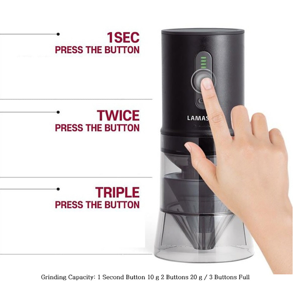 Grinding Capacity: 1 Second Button 10 g 2 Buttons 20 g / 3 Buttons Full