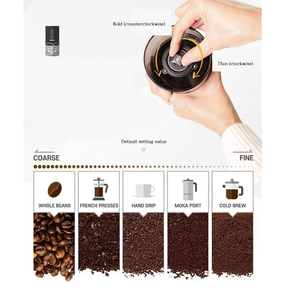 Rechargeable, convenient portability.Grinding degree adjustable,Ceramic Conical Burr