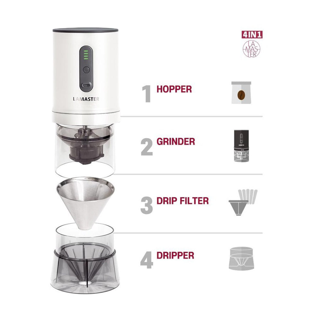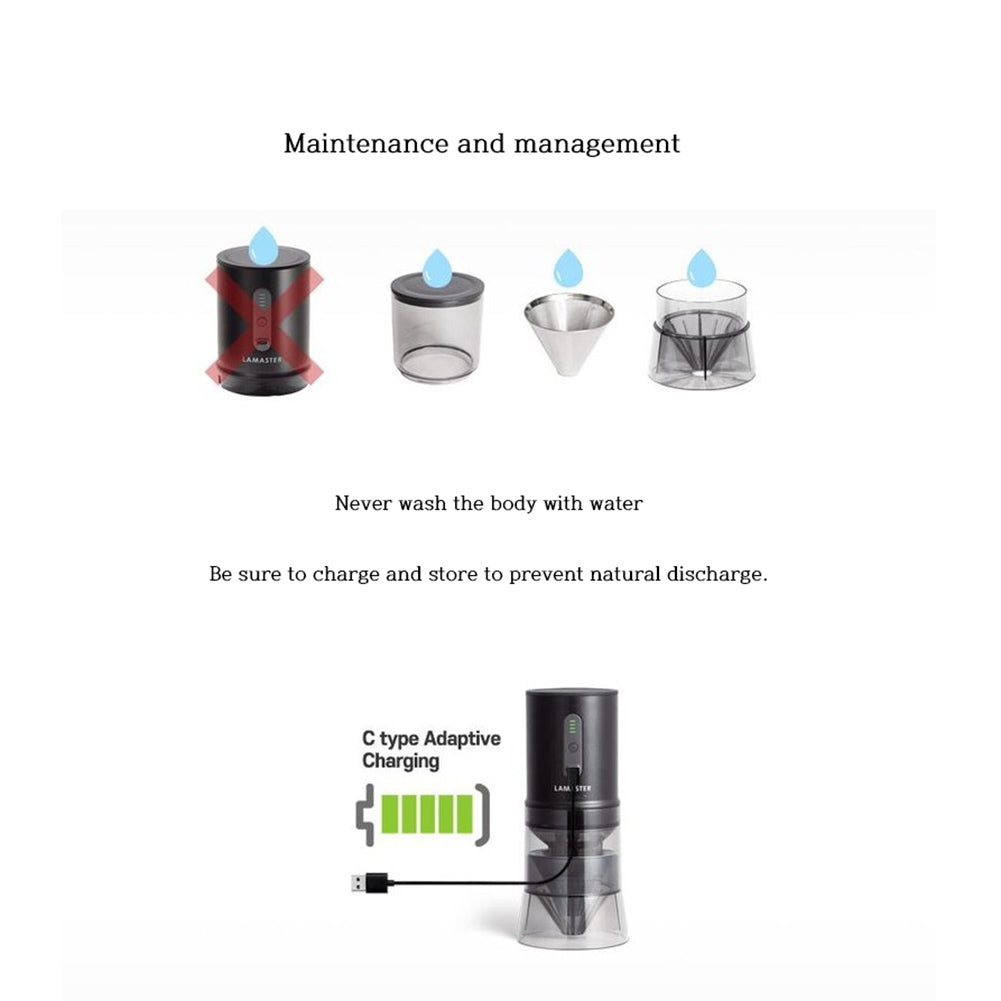 Basic components: Main body grinder dripper drip filter (for 1-2 people) charging cable