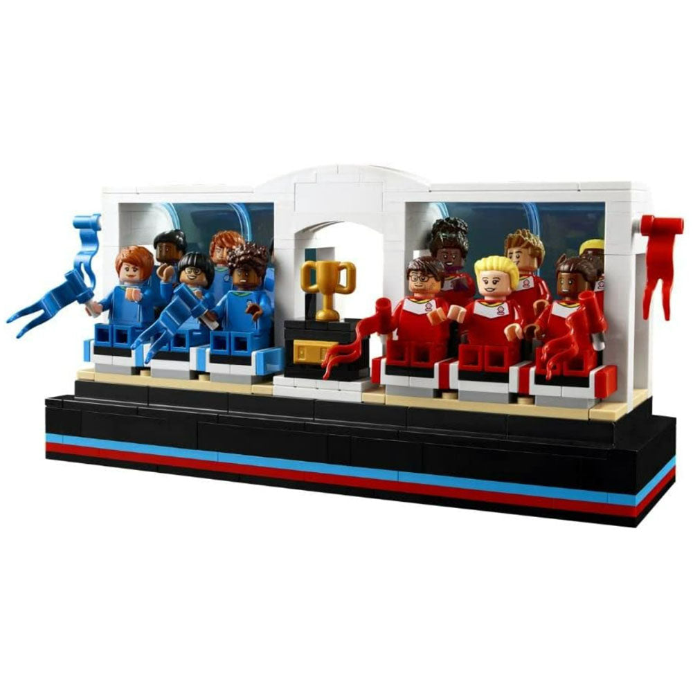 There are 5 minifigures in each team and 2 levers per team to control them. From children to grandfather and grandmother's anyone can join the fun and share their love for the game. Place those minifigures that don't play in the buildable stands and give them flags to create a stunning atmosphere.