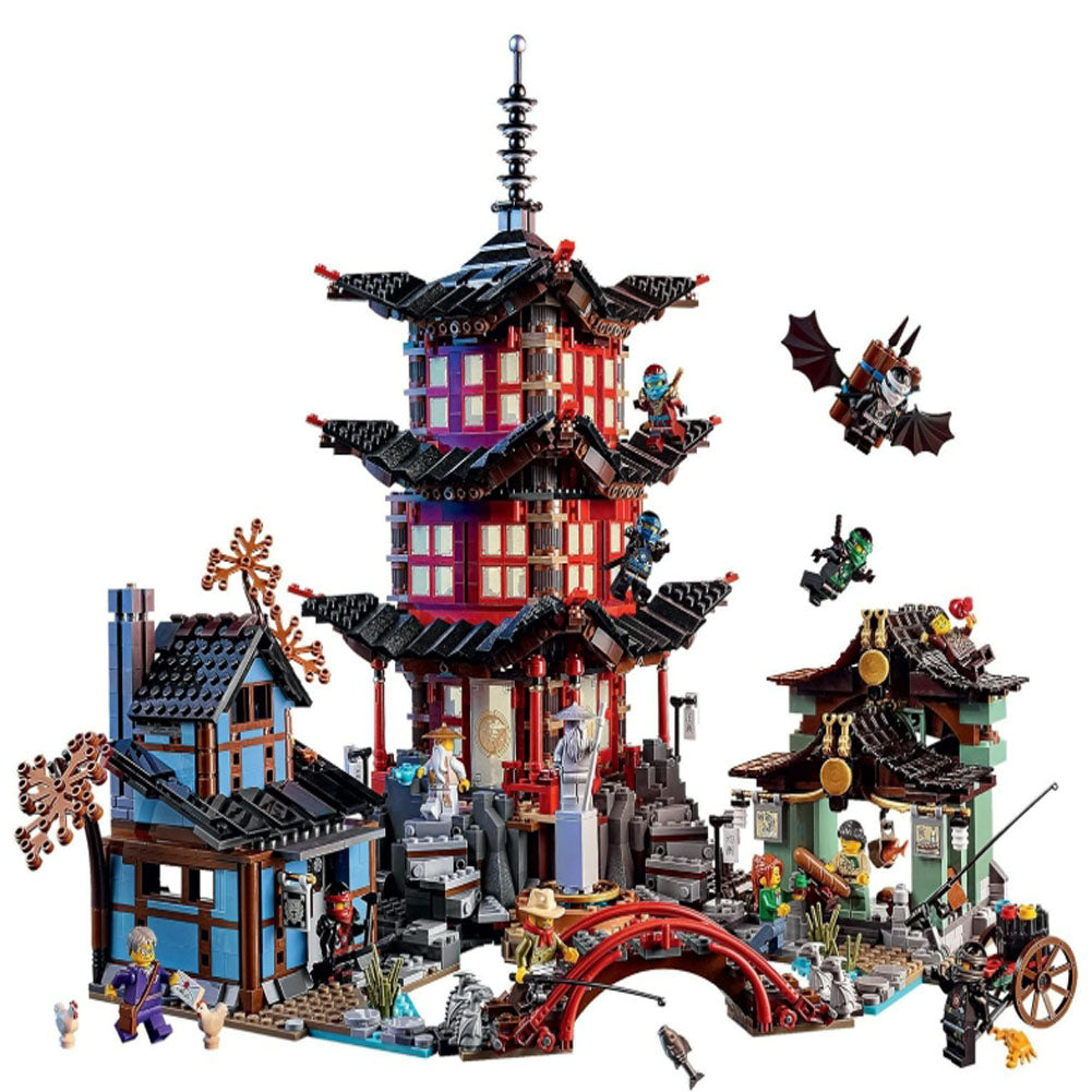 Enjoy the ultimate LEGO NINJAGO building experience as you construct the majestic Temple of Airjitzu and surrounding village! The highly detailed Temple building has many delightful architectural features including ornate windows and sliding doors.