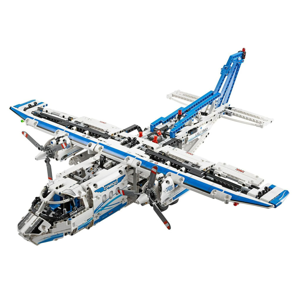 Zoom down the runway and off on another tough cargo mission with the biggest and most demanding LEGO Technic plane yet. This is so much more than just a model, as it has a range of real-world functions to help it do its job. Move the joystick and watch the flaps, elevators and ailerons move, then activate the LEGO Power Functions motors to open the front and rear cargo bay, retract the landing gear and spin the propellers. It's just like the real thing! Rebuilds into a Transport Hovercraft.