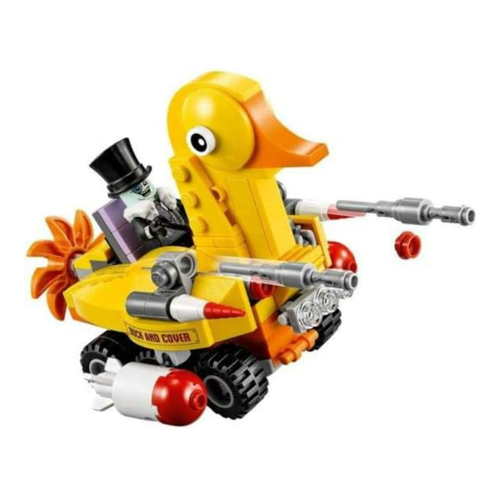 Defend against The Penguin’s Duckmobile invasion of the Batcave in THE LEGO BATMAN MOVIE: Batcave Break-in set. The highly detailed Batcave features a rotating transformation chamber for Bruce Wayne to ‘transform’ into Batman, rotating Batcomputer control center with multiscreen elements and elevating platform function, and a prison with an exploding escape wall function. The Batcave also has a rotating wardrobe with alternative Scu-Batsuit, Raging Batsuit or the Bat-Pack Batsuit minifigure bodies for Batman. Dial up the conflict by using the Batboat’s spring-loaded missiles against the Duckmobile’s dual stud shooters and flick missiles. Includes four minifigures plus two Hench-Penguin figures.