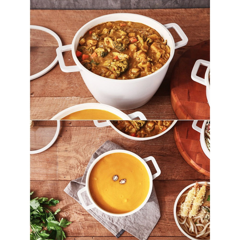 - High Thermal Efficiency & Heat Preservation Premium Whole Casting Cookware, Silicone ring lid to prevent collision with pot.