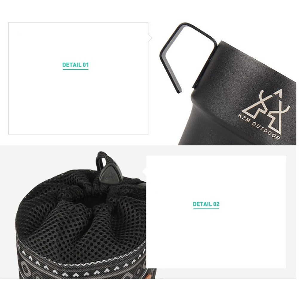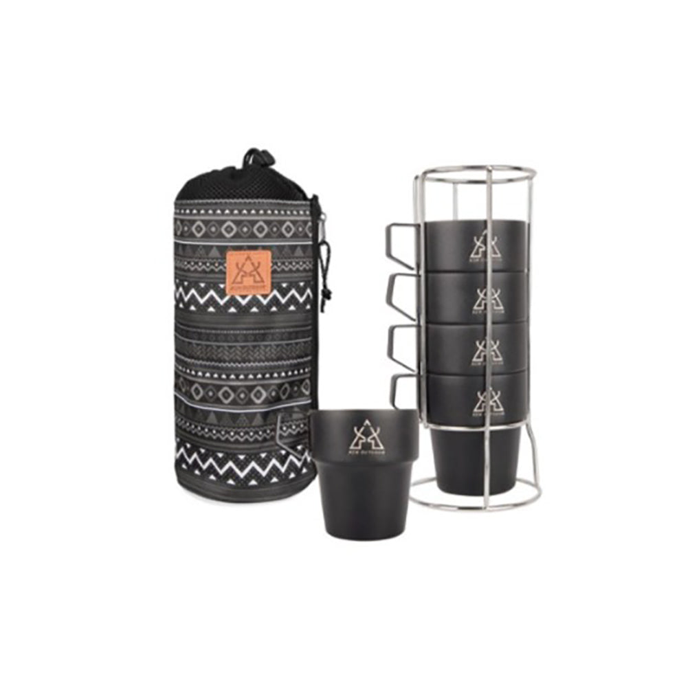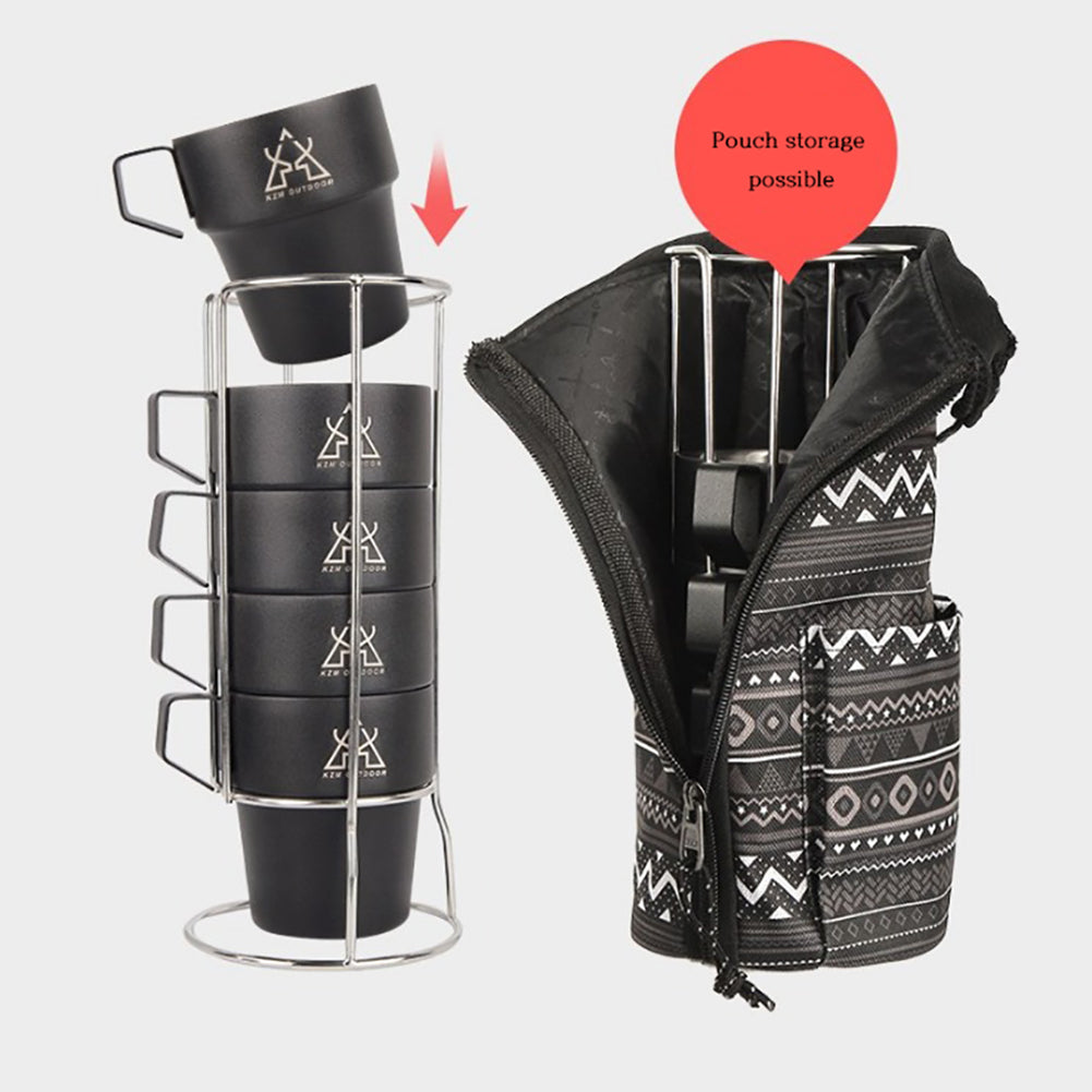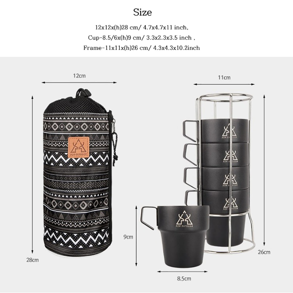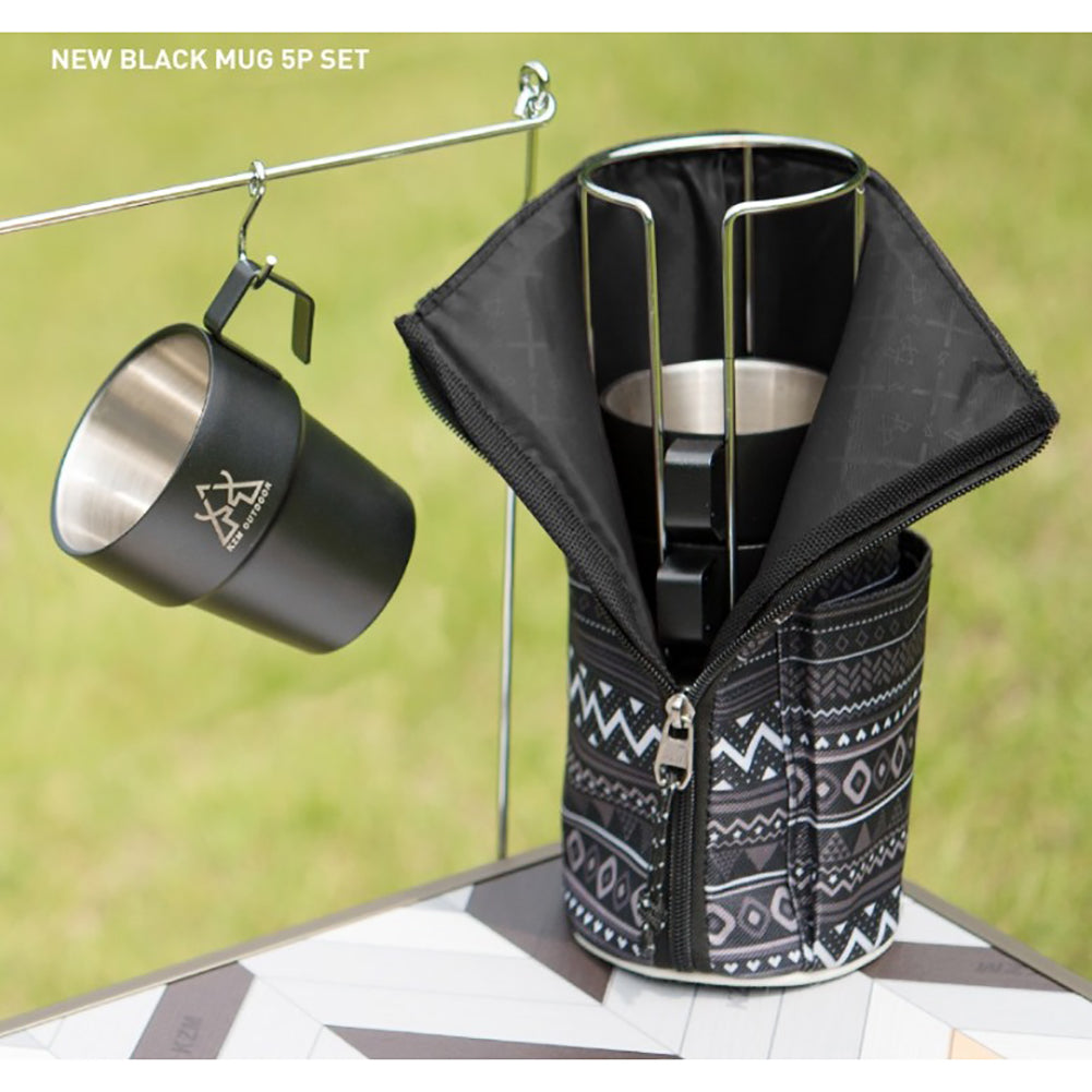 KM Camping stainless steel Cup 300ml Ultralight Water Tea Coffee Mug 5P Set with Pouch Portable Foldable Handle Backpacking Hiking Picnic Outdoor Black
