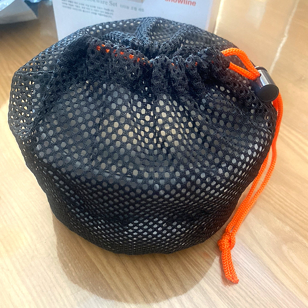 5. A dedicated pouch is provided. Pack the two pots and one frying pan securely in the pouch for easy carrying. Even when fully packed, the total weight is only 350g/0.77lbs.