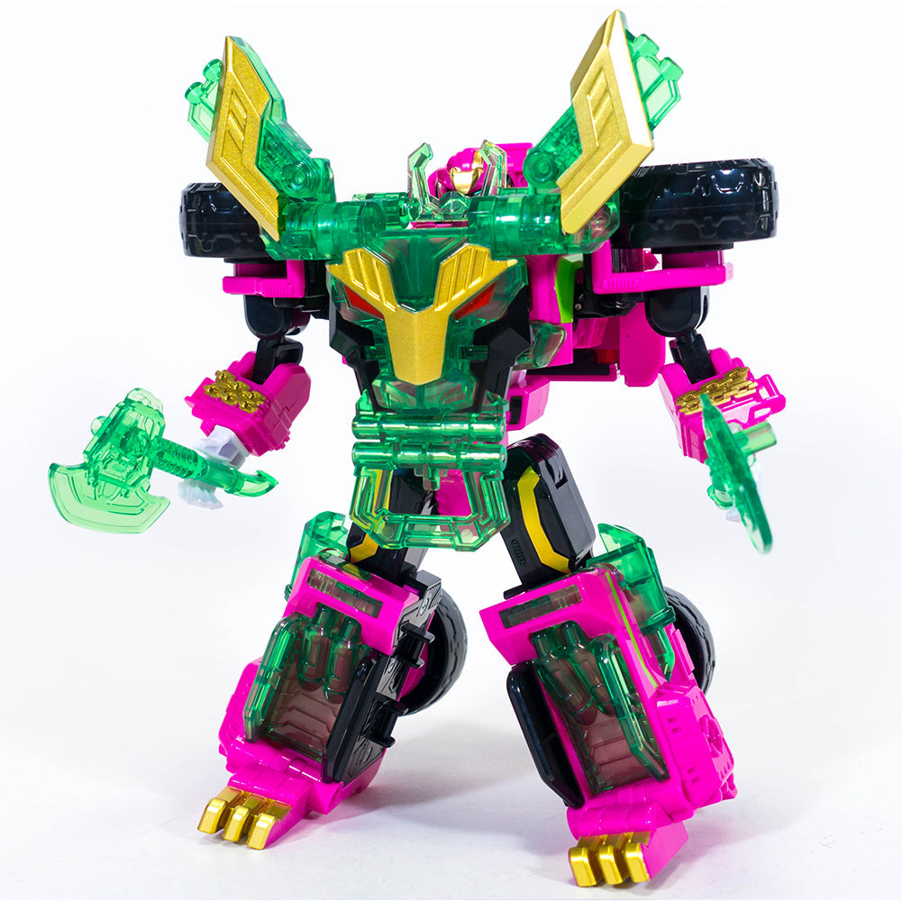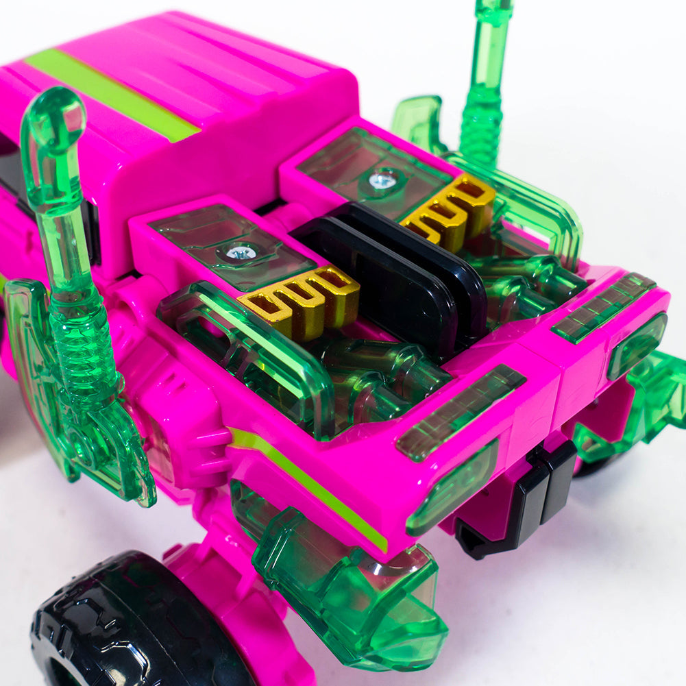 2. In vehicle mode, BUFALO CRUSH becomes a mighty monster truck. Its design, structure, and color combinations are all flawless, capturing the true essence of a monster truck with detailed custom wheels, grill, and bumper. The translucent green accent parts add a perfect touch, elevating the overall look.