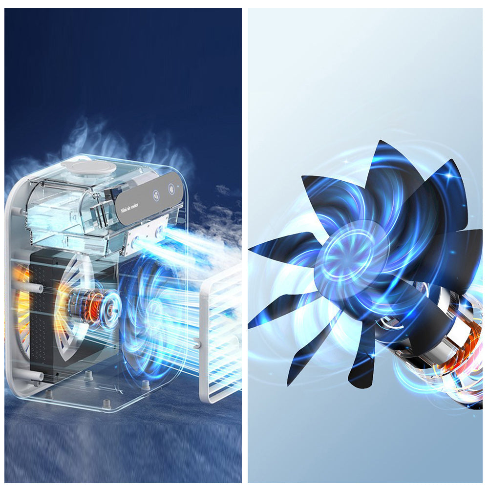 1. Introducing a portable air conditioner and mini cooling fan, featuring simultaneous humidification and cooling breeze! With its built-in rechargeable battery, this portable device is incredibly convenient.