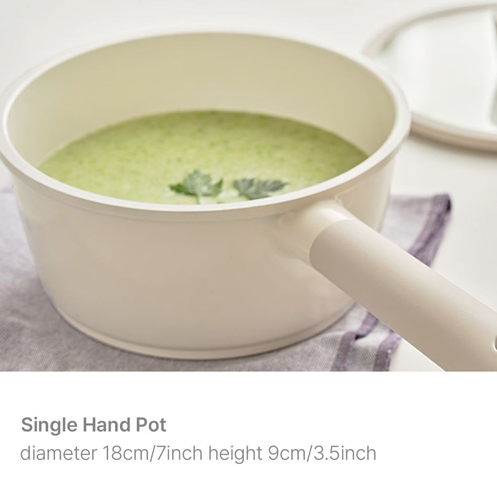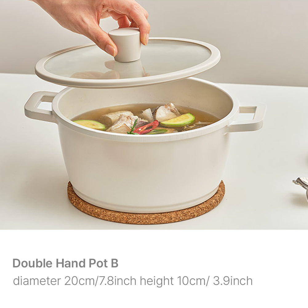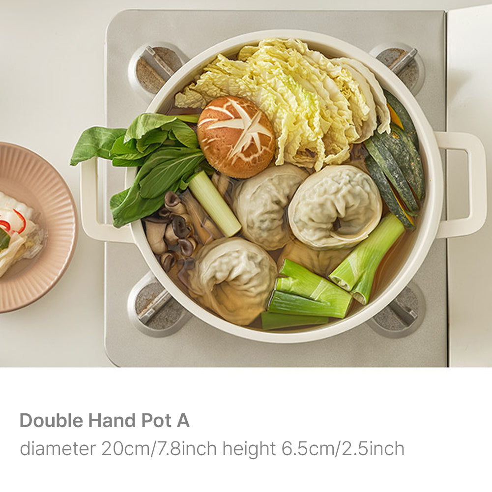 Components: (Single Hand Pot) diameter 18cm/7inch height 9cm/3.5inch, (Double Hand Pot A) diameter 20cm/7.8inch height 6.5cm/2.5inch, (Double Hand Pot B) diameter 20cm/7.8inch height 10cm/ 3.9inch