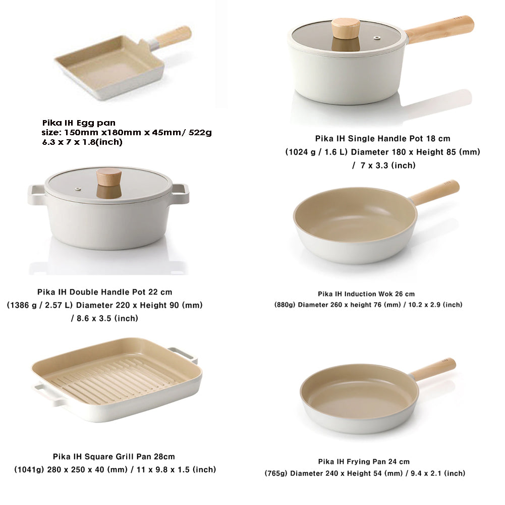 - Fika IH Egg pan : (522g) 150mm x180mm x 45mm / 6.3 x 7 x 1.8(inch)