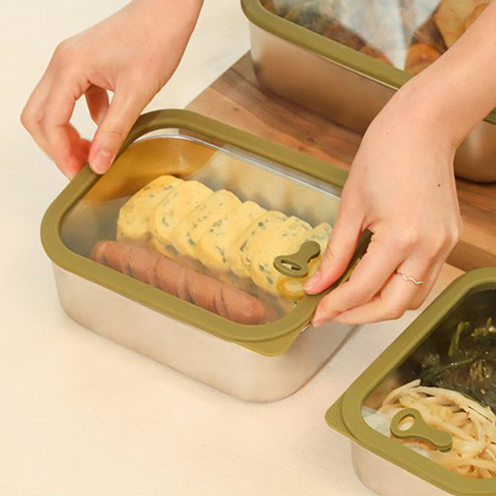 With Molly Microwave Induction Oven Stainless Steel Sealed Container 3P((2000m+ 1200ml + 600ml)