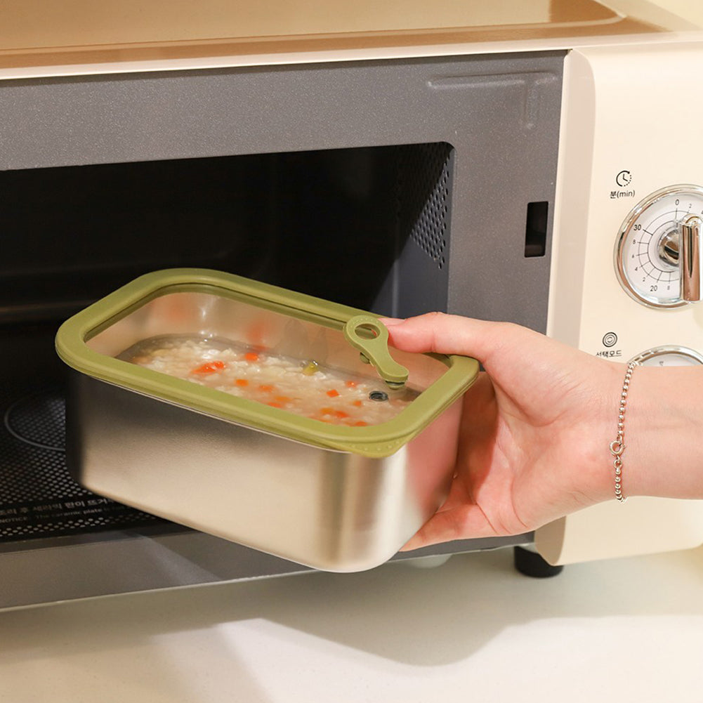 3. Wondering how a stainless steel container can be microwave-safe? Unlike regular stainless steel containers made with multiple layers, this container is crafted from single-layer stainless steel with no air pockets. This design ensures safe use in microwaves, as multi-layered stainless steel containers can create sparks in microwaves, making them unsafe.