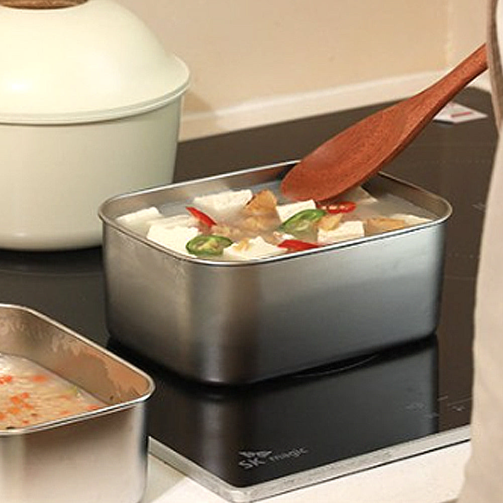 2. Store and cook food all in one! This all-around stainless steel container set is not only microwave-safe but also suitable for use on induction cooktops and in ovens.