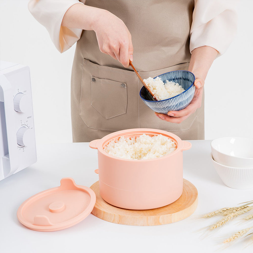 With Molly Microwave Low Carb Rice Cooker Container Diet Low Carb Rice Silicone Rice Cooker Pink