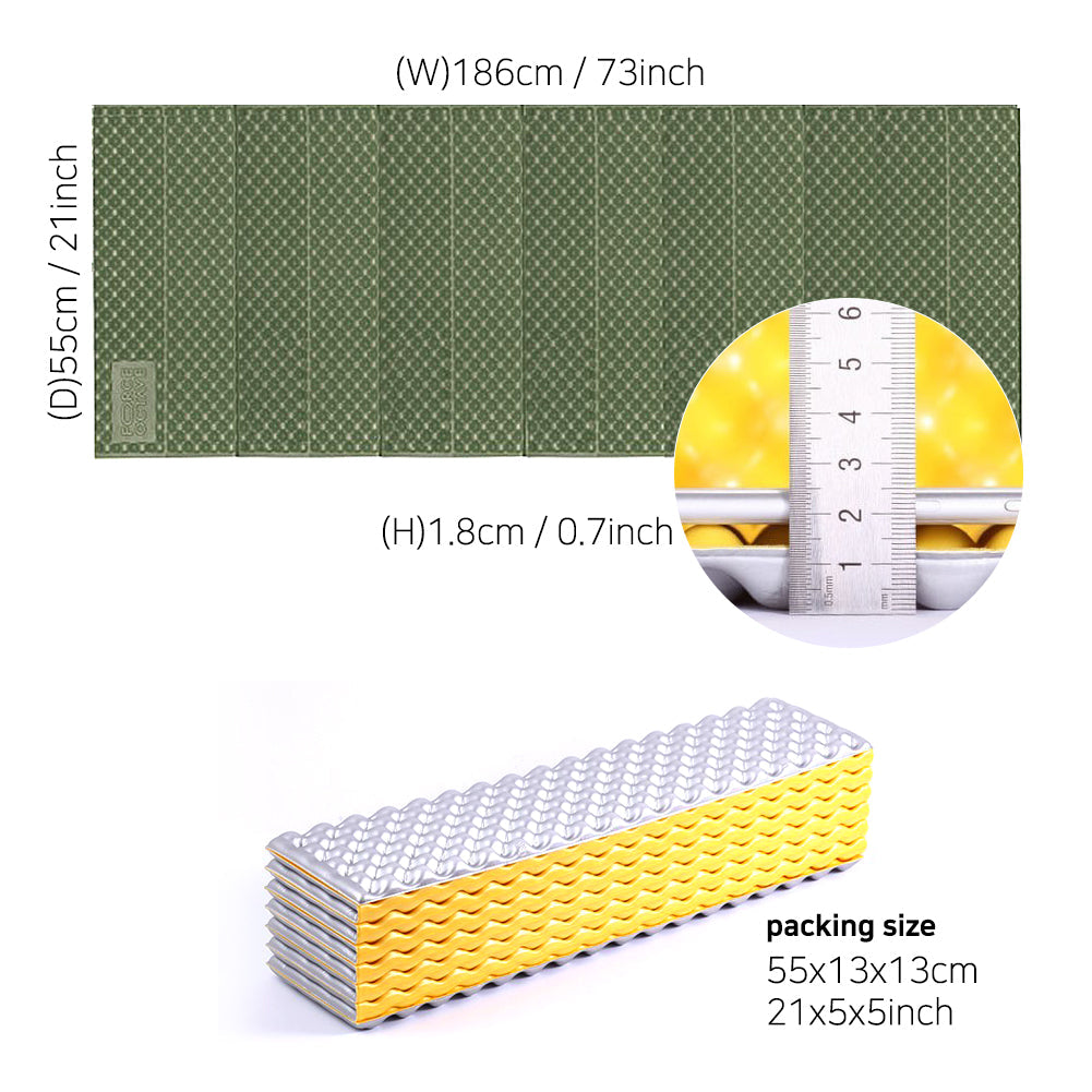 1. A foldable foam mat suitable for backpacking, camping, and outdoor activities.