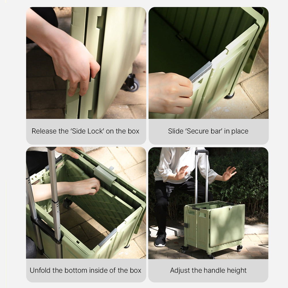 With Molly Nemo Platform Truck Cart with folding box cart, Premium Shopping Foldable Cart Green 17.3(W)x13.7(D)x18.5~38.1(H)inch