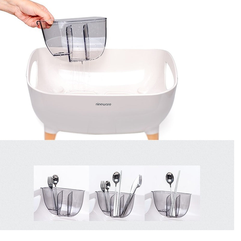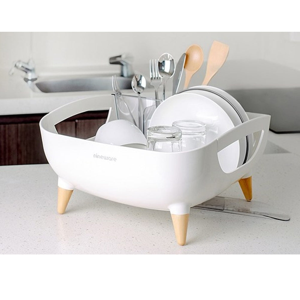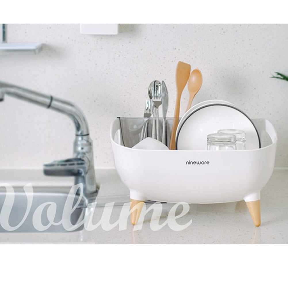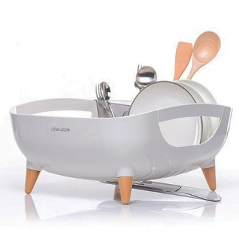 With Molly Nineware Volume Dish Drying Rack 17.3x15x6.3"/44x38x16cm Stylish Design, 360° Rotatable Water Drain, 2 Removable Utensil Holders, ABS Plastic Material, Made in Korea (white)