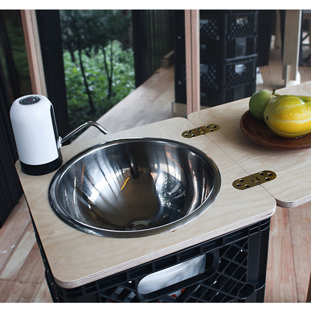 Components: Milk Box Black 2, Stand Base, Stand Top, 12L Clean Water Tank, 10L Wastewater Tank, Stainless Sink Bowl, Automatic Water Pump