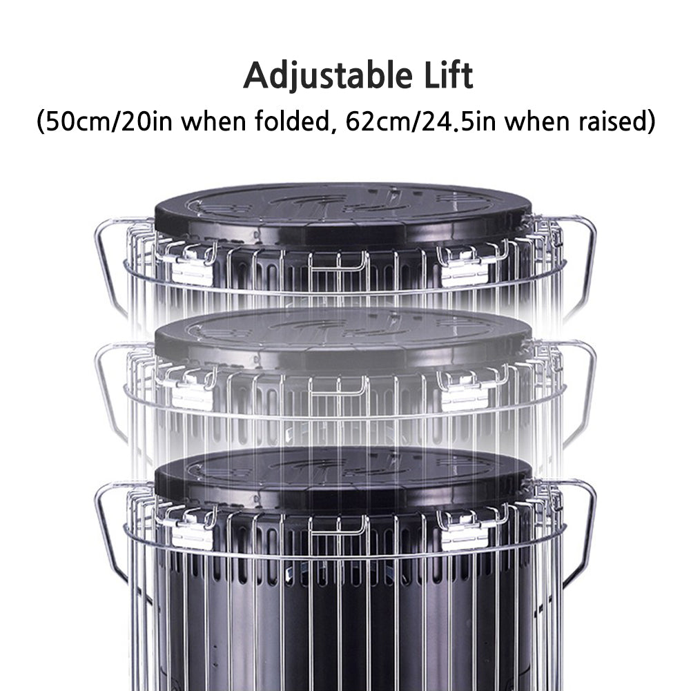 5. Featuring adjustable lift, this camping stove is foldable for easy storage and transport! (50cm/20in when folded, 62cm/24.5in when raised)