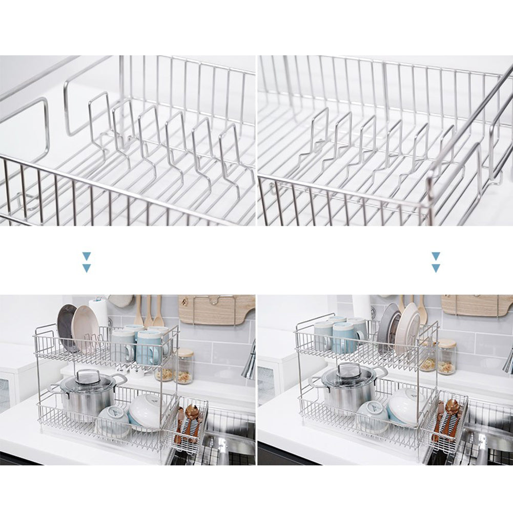 1. It is a hygienic 2-tier dish drying rack made of durable 304 stainless steel, resistant to water and corrosion.