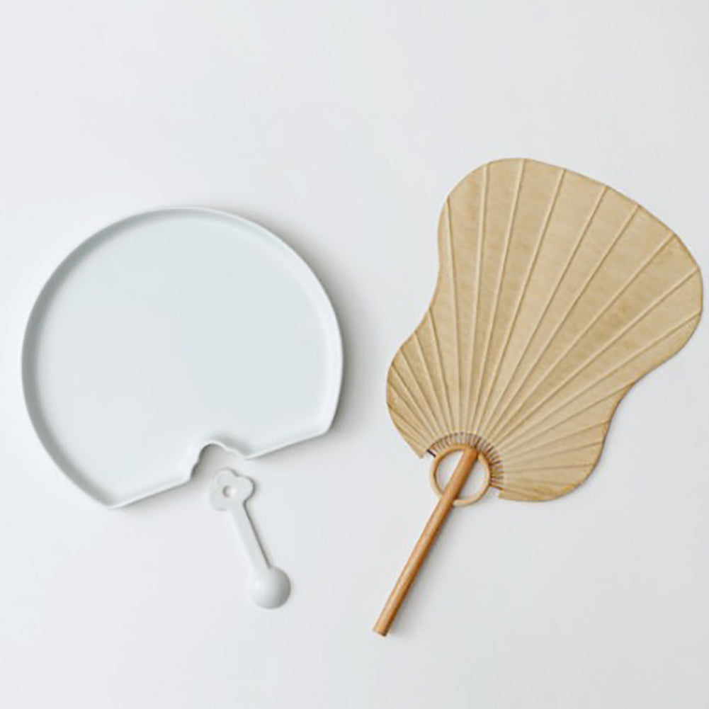 With Molly SBG Handmade Artisan Fan Shaped Plate Set Dish + Fork/Chopstick Rest glossy 8.2x6.8x0.7inch