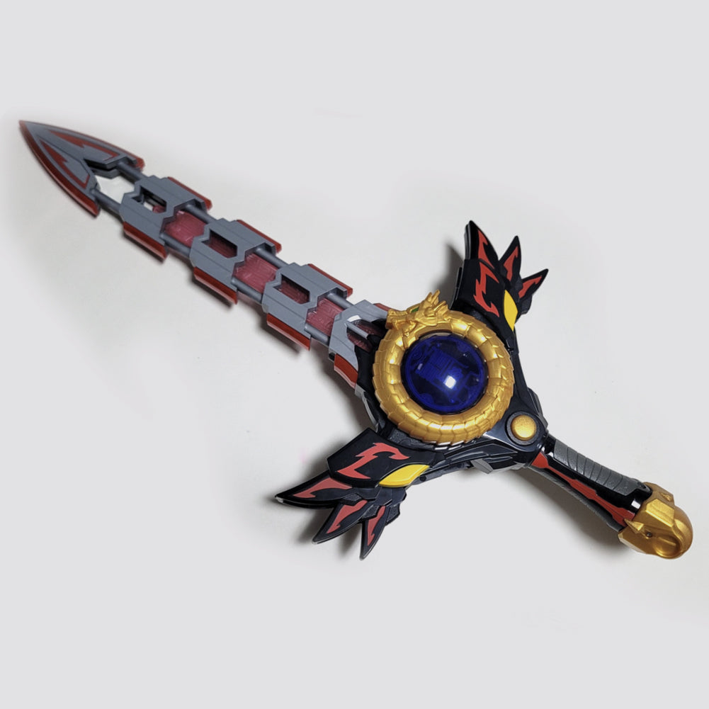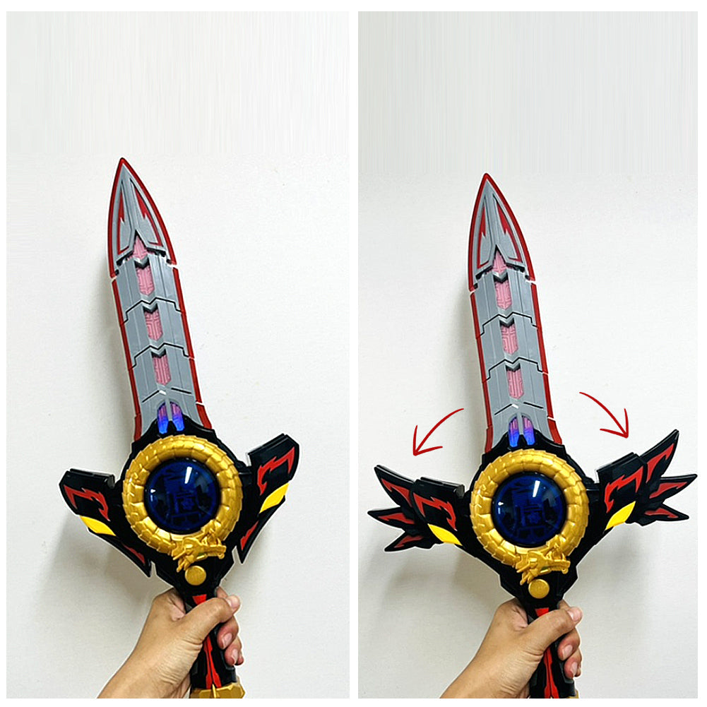 3. In the default mode, pressing a button causes the sword to transform into a shape with extended wings when the user activates the wings. Additionally, rotating the sword handle elongates the blade, transforming it into a battle mode