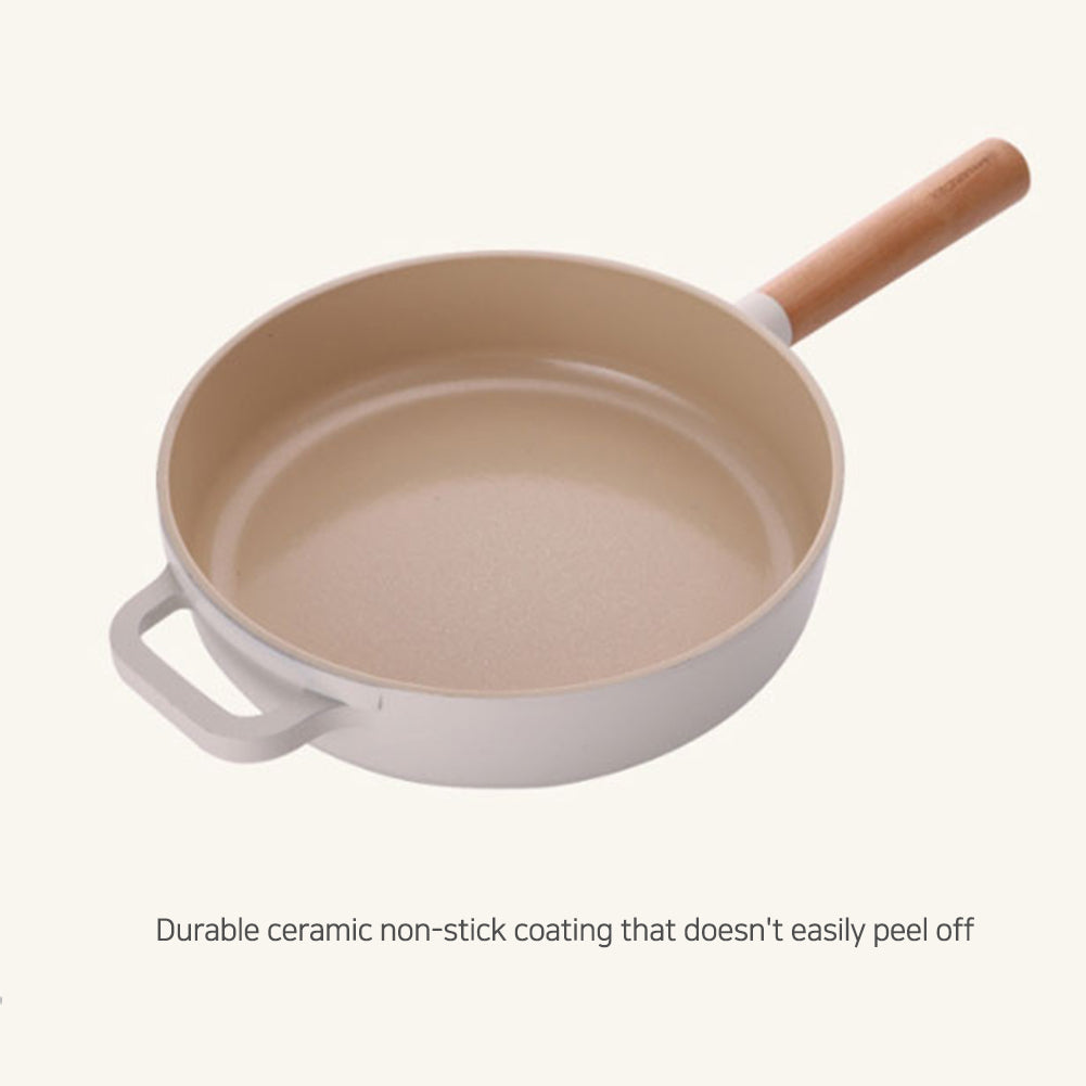 Material: (body) aluminum (handle) wood (coating) Ceramic