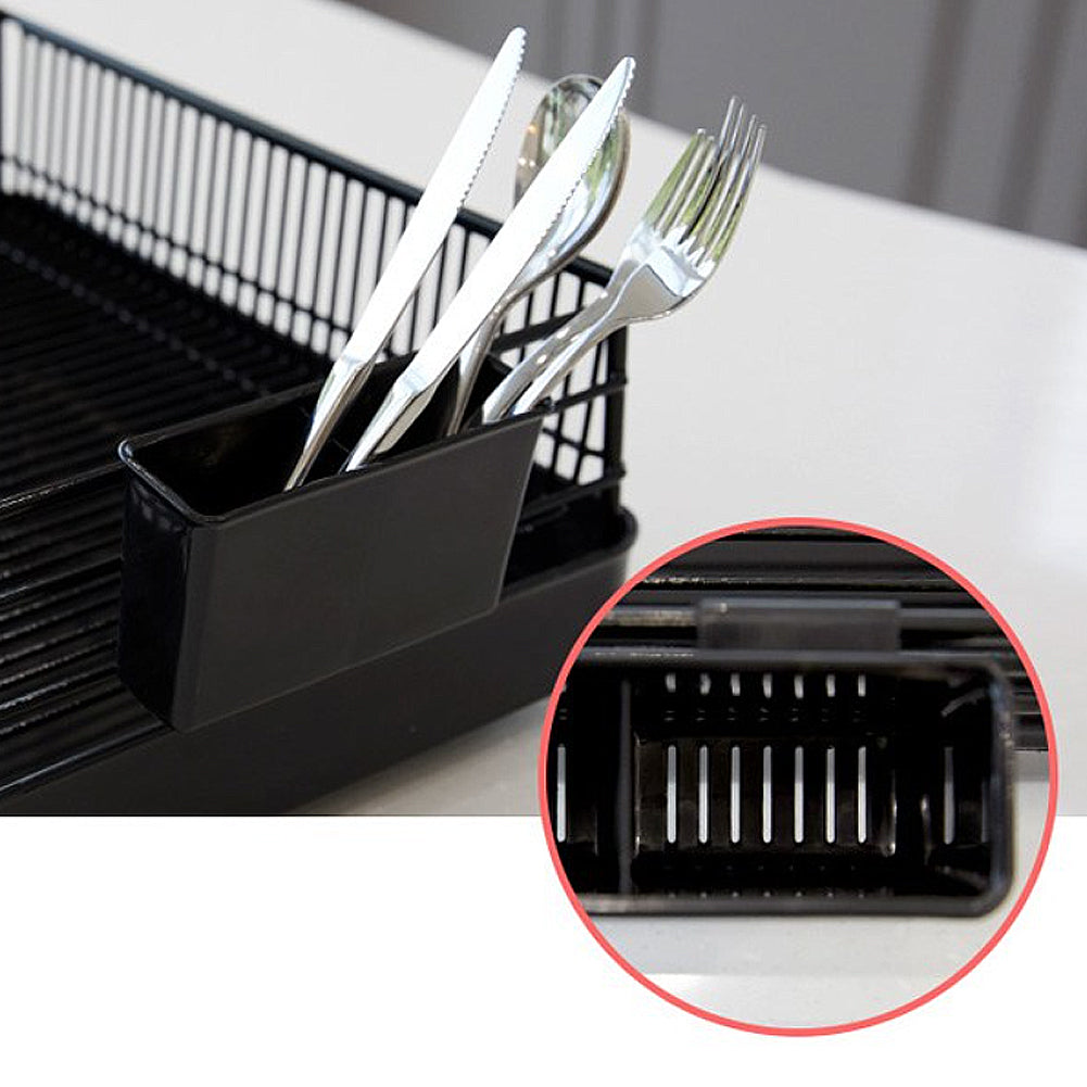 4. The included utensil holder can be attached and detached on all four sides of the drying rack, and it facilitates easy drying with water drainage holes on the bottom.