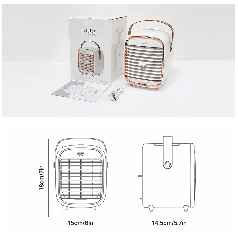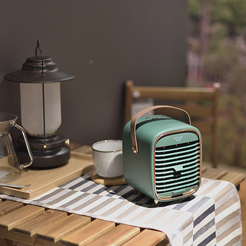 With Molly windy Portable Cooler Used in Camping, Outdoor, Office, Various Spaces, USB Charging, Green 6(W)x5.7(D)x7(H)in