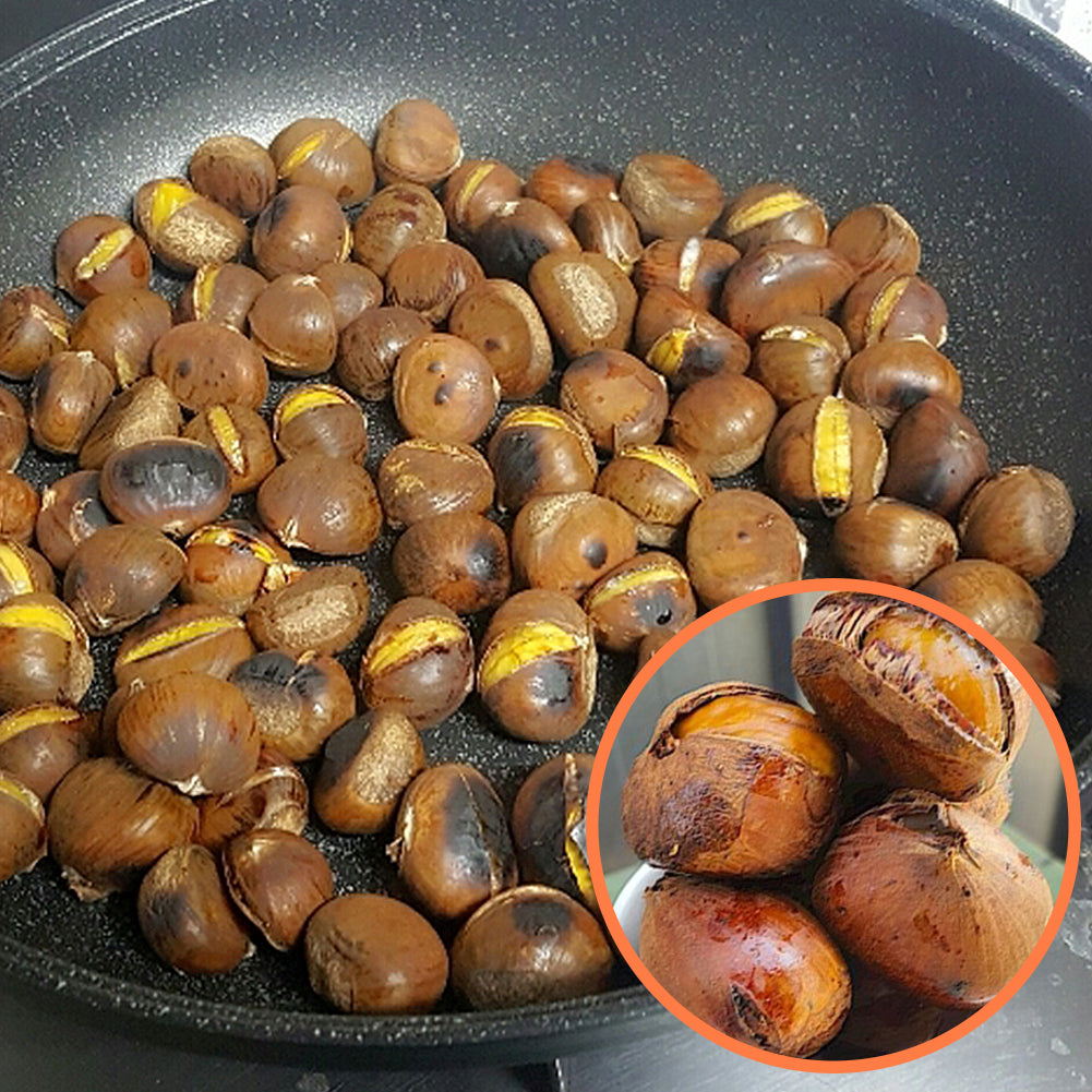 3. Simply put sweet potatoes or chestnuts in the pan and close the lid! In just 20-30 minutes, you'll have a warm winter snack.